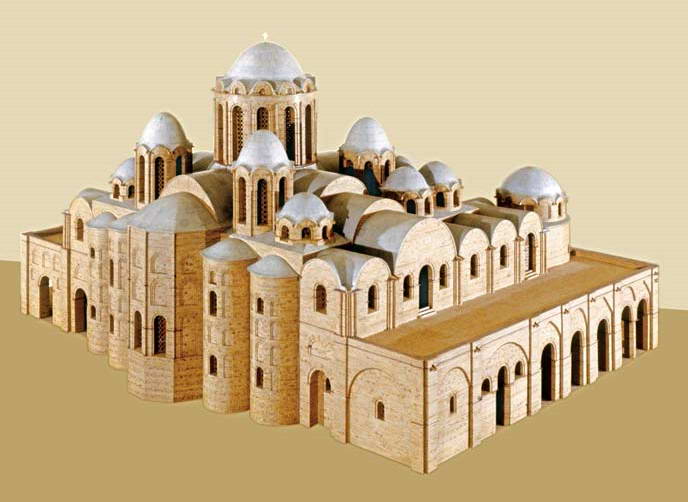 Макет-реконструкціяРозмір зображення: 688:502 піксел Собор 11 ст. Макет-реконструкція Ю. Асєєва, В. Волкова, М. Кресального. Джерело: Звід пам’яток історії і культури України. – К.: 2011 р., т. 3 (Київ), № 503-16. |