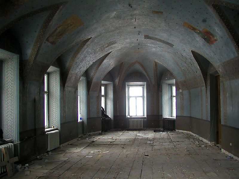 Інтер’єри Розмір зображення: 800:600 піксел Найчастіше переглядають 2004 р. Сходи на 2 поверх 2006 р. 2 поверх. Північний ризаліт. Вигляд із заходу (+) 2006 р. 1 поверх. Приміщення ліворуч від головного входу. Залишки розпису. (+) Вкладені елементи 2004 р. Вестибюль 1 поверху 2004 р. Сходи на 2 поверх 2006 р. Сходи на 2 поверх 2004 р. Коридор 2 поверху 2005 р. 1 поверх. Приміщення ліворуч від головного входу. Залишки розпису. (+) 2006 р. 1 поверх. Приміщення ліворуч від головного входу. Залишки розпису. (+) 2005 р. 1 поверх. Південний різаліт. Вигляд із заходу 2006 р. 1 поверх. Південний різаліт. Вигляд із заходу 2006 р. 1 поверх. Південний різаліт. Вигляд зі сходу 2006 р. 1 поверх. Велике фойє. Вигляд з півночі 2006 р. 2 поверх. Південна стіна верхньої площадки сходів. Вигляд з північного сходу 2006 р. Прохідна кімната до північного ризаліту 2006 р. 2 поверх. Парадний зал. Вигляд з півночі 2006 р. 2 поверх. Північний ризаліт. Вигляд із заходу (+)