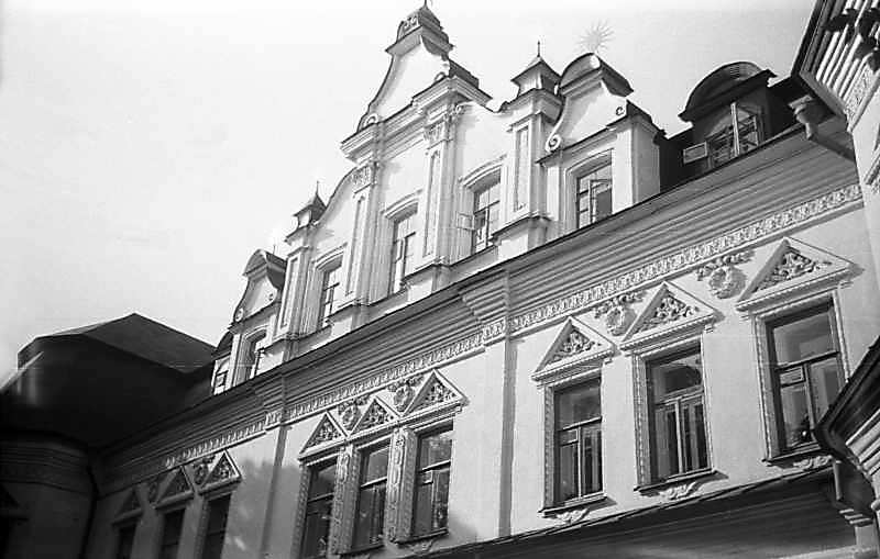 1975 р. Головний фасад. Верхня частинаРозмір зображення: 800:509 піксел 1975 р. 15 вересня. Фото М.І.Жарких. Негатека, № A066-25. |