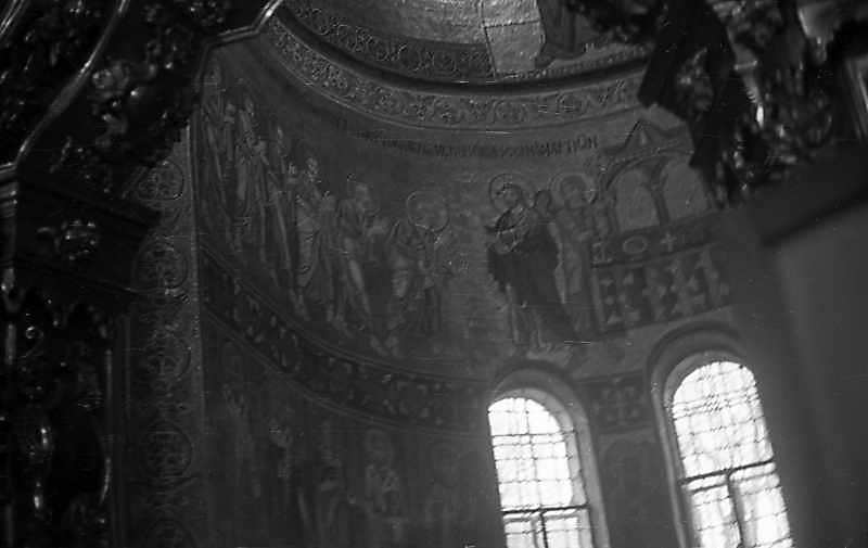 1976 р. Фрагмент головної апсидиРозмір зображення: 800:505 піксел 1976 р. 27 березня. Фото М.І.Жарких. Негатека, № A093-22. |