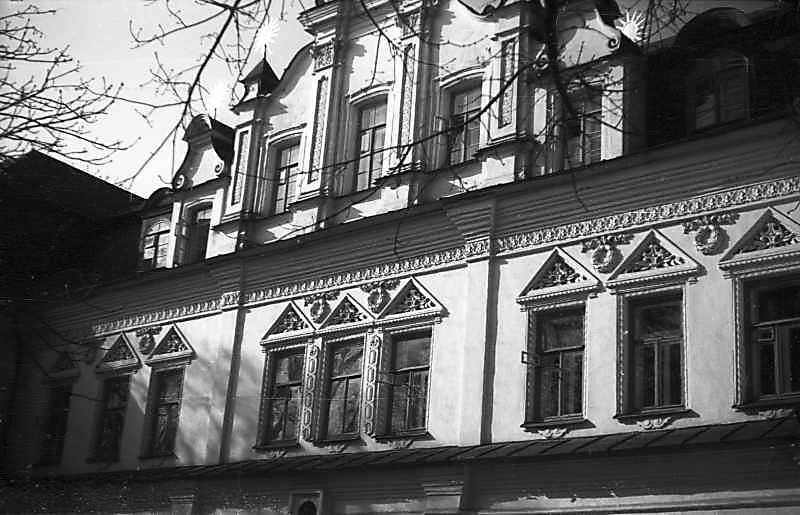 1977 р. Центральна частина північно-східного фасаду. Вигляд з півночіРозмір зображення: 800:515 піксел 1977 р. 26 березня. Фото М.І.Жарких. Негатека, № A242-26. |