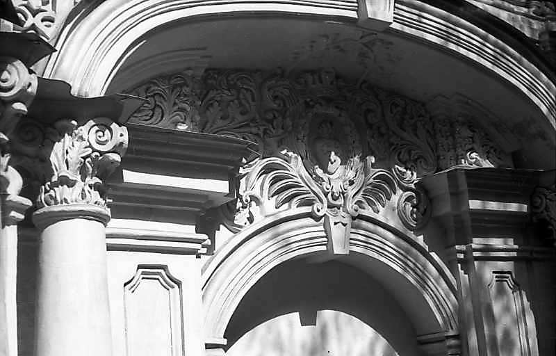 Тимпан арки проїзду Розмір зображення: 800:512 піксел 1977 р. 4 травня. Фото М.І.Жарких. Негатека, № A254-36. Попередня сторінка | Вище | Наступна сторінка