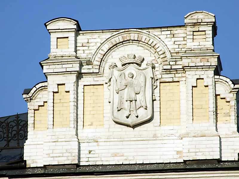 Фронтон з гербом Києва Розмір зображення: 800:600 піксел 18 липня 2007 р. Фото М.І.Жарких. Попередня сторінка | Вище | Наступна сторінка