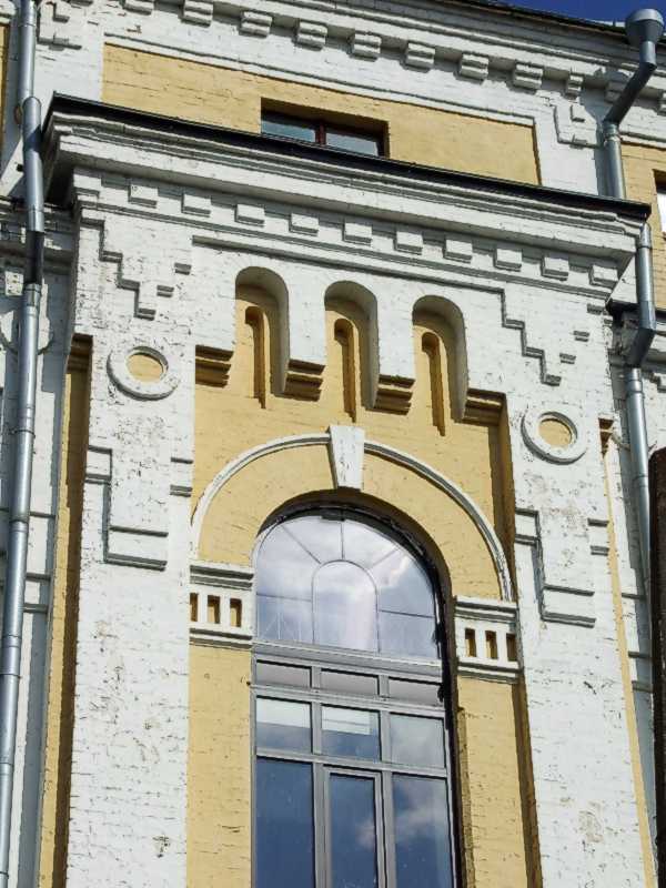 Фрагмент головного фасаду (сходова клітка)Розмір зображення: 600:800 піксел Фото М. І. Жарких, 21 березня 2021 р. |