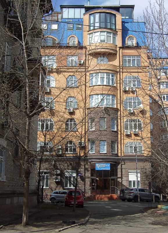 2021 р. Бічний фасад. Вигляд з боку вул. ЩекавицькоїРозмір зображення: 578:800 піксел Фото М. І. Жарких, 24 березня 2021 р. |