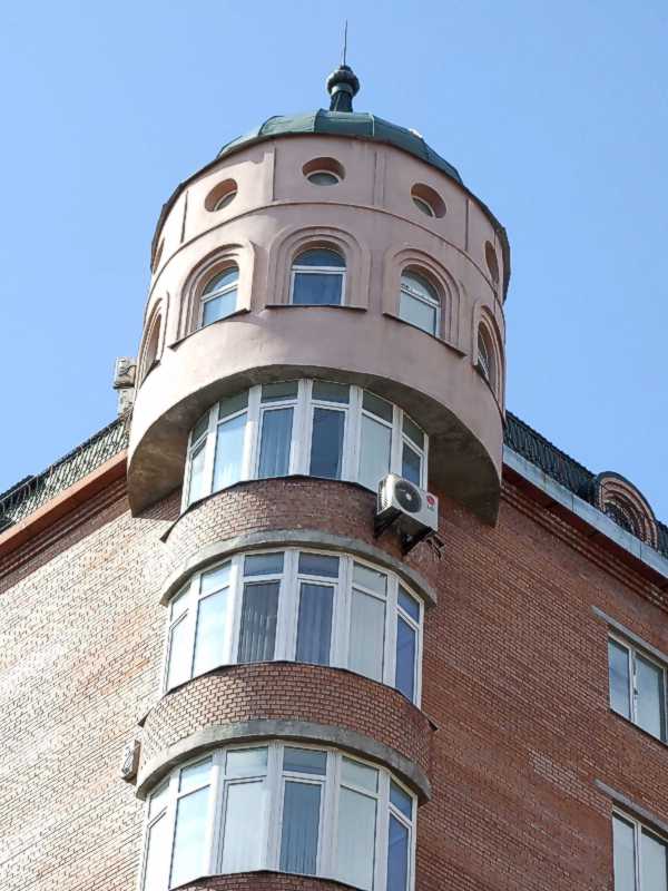 2021 р. Наріжний еркер з башточкою Розмір зображення: 600:800 піксел Фото М. І. Жарких, 24 березня 2021 р. Вище | Наступна сторінка