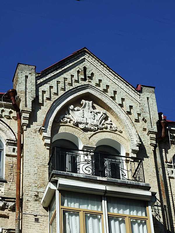 Центральний фронтон Розмір зображення: 600:800 піксел Фото М. І. Жарких, 16 березня 2020 р. Вкладені елементи Рельєф у тимпані фронтону