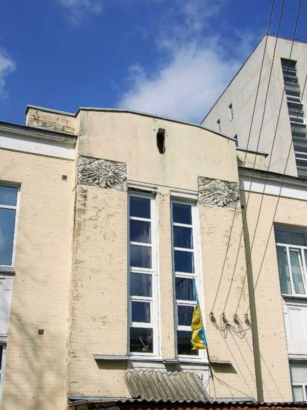 Сходова клітка Розмір зображення: 600:800 піксел Фото М. І. Жарких, 24 березня 2021 р. Вкладені елементи Рельєф на фасаді