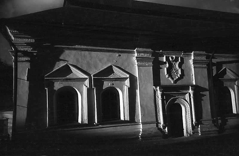 1978 р. Західна частина південного фасаду. Вигляд з півдняРозмір зображення: 800:524 піксел 1978 р. 8 квітня. Фото М.І.Жарких. Негатека, № 033-02. |