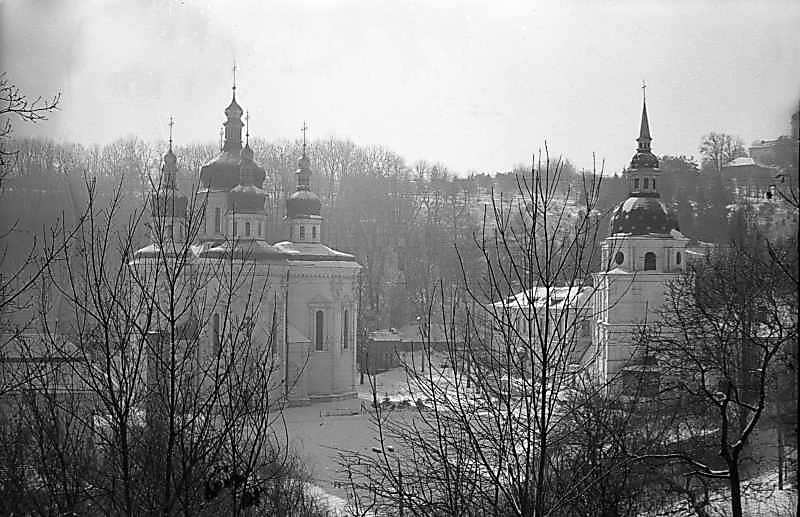1980 р. Георгіївський собор і дзвіниця. Вигляд з півночіРозмір зображення: 800:517 піксел 1980 р. 16 лютого. Фото М.І.Жарких. Негатека, № 113-37. |