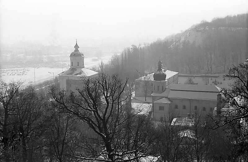1980 р. Михайлівський собор, братський корпус і трапезна. Вигляд з півночіРозмір зображення: 800:522 піксел 1980 р. 16 лютого. Фото М.І.Жарких. Негатека, № 114-03. |