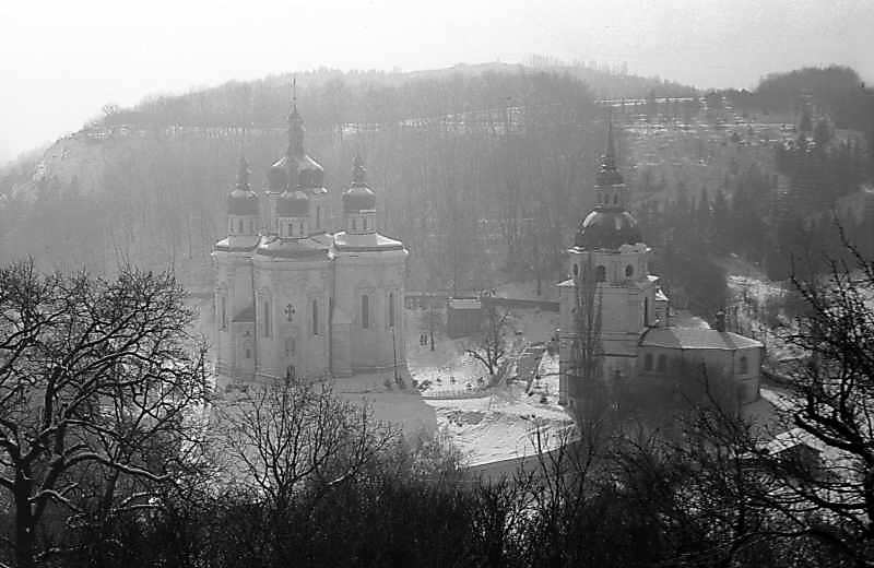 1980 р. Георгіївський собор і дзвіниця. Вигляд з півночіРозмір зображення: 800:520 піксел 1980 р. 16 лютого. Фото М.І.Жарких. Негатека, № 114-05. |