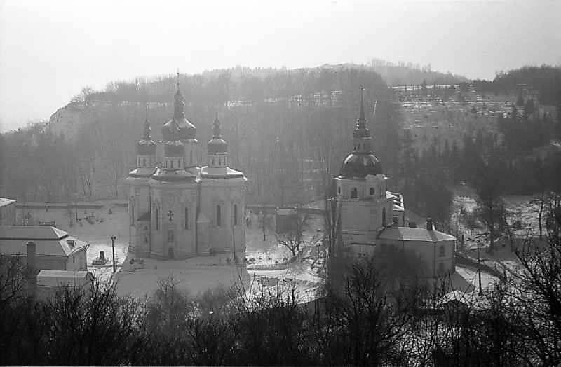 1980 р. Георгіївський собор і дзвіниця. Вигляд з півночіРозмір зображення: 800:524 піксел 1980 р. 16 лютого. Фото М.І.Жарких. Негатека, № 114-08. |