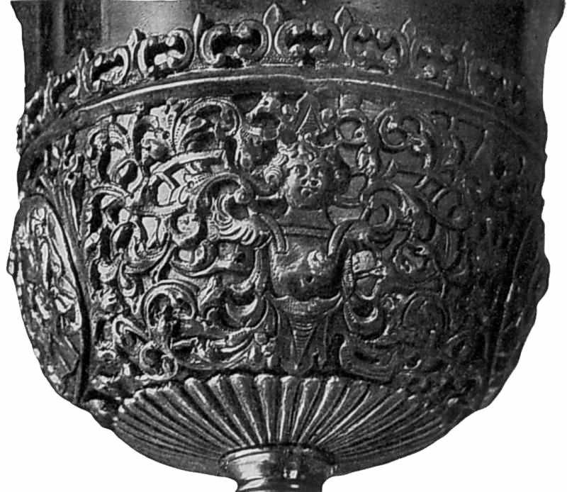 Пояс декоруРозмір зображення: 800:694 піксел Чаша срібного келиха. Державний історичний музей УРСР у Києві, № 641 Джерело: Петренко М.З. Українське золотарство 16 – 18 ст. – К.: 1970 р., с. 117. |