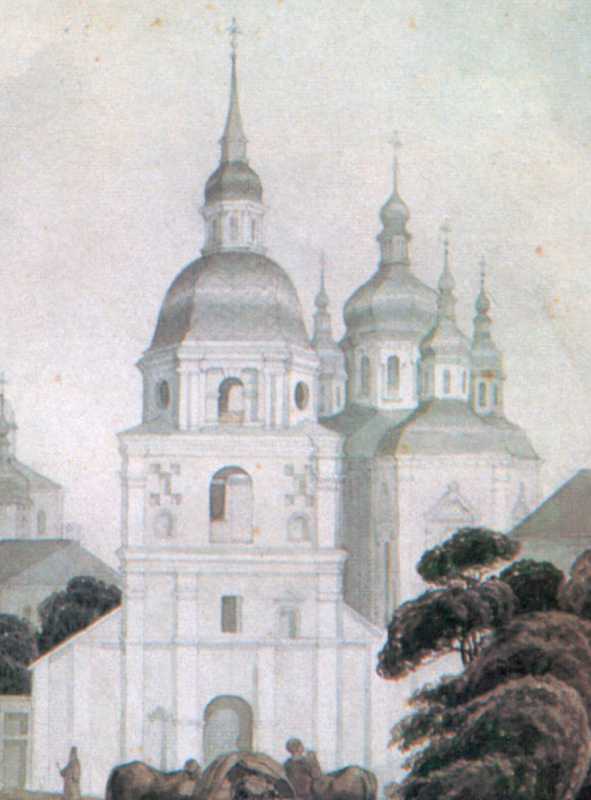 Дзвіниця і Георгіївський соборРозмір зображення: 591:800 піксел Джерело: Крізь віки: Київ в образотворчому мистецтві 12 – 20 ст. – К.: Мистецтво, 1982 р., № 177. |