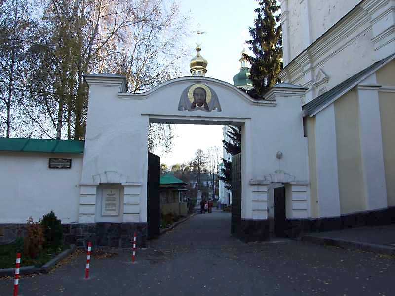 2008 р. Брама. Загальний вигляд із заходу Розмір зображення: 800:600 піксел 8 листопада 2008 р. Фото М.І.Жарких. Вкладені елементи Ліхтарик і хрест Мозаїка “Спас нерукотворний”