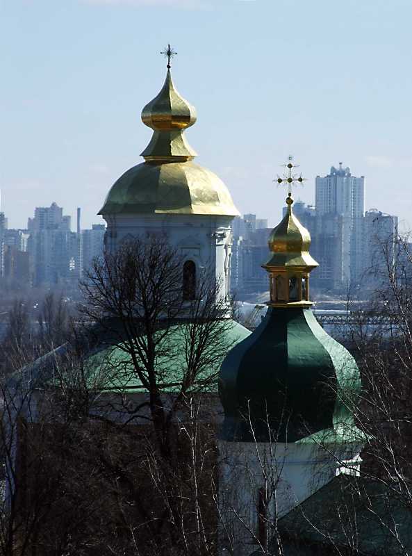 2011 р. Верхи Михайлівського собору і трапезної. Вигляд із заходуРозмір зображення: 593:800 піксел 16 березня 2011 р. Фото М.І.Жарких. |