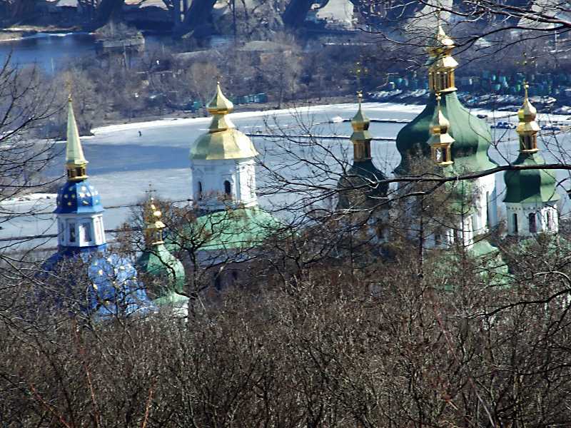 2011 р. Верхи Михайлівського собору і трапезної. Вигляд із заходу