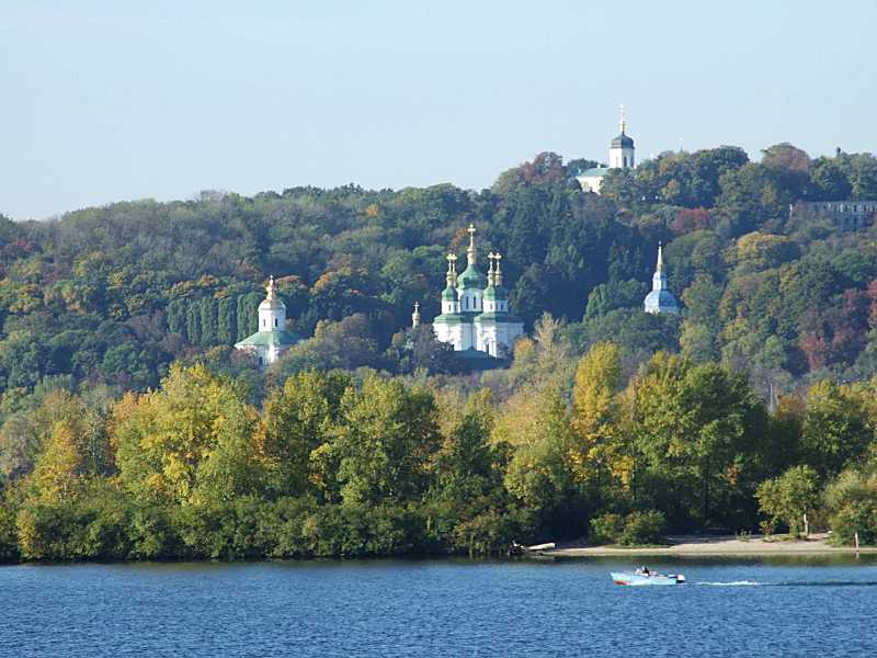 2017 р. Загальний вигляд Видубицького та Іонівського монастирівРозмір зображення: 800:600 піксел Вид з Дніпровської набережної. Фото М. І. Жарких, 10 жовтня 2017 р. |