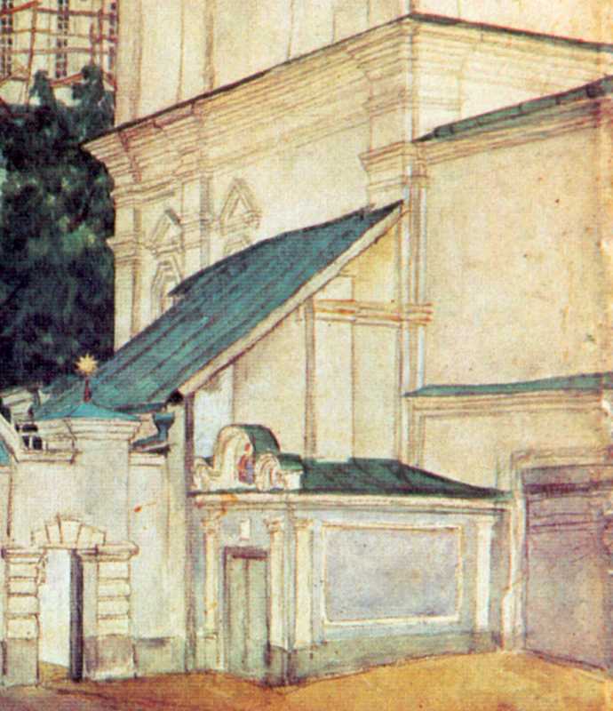 Перший ярус дзвіниціРозмір зображення: 690:800 піксел Джерело: Крізь віки: Київ в образотворчому мистецтві 12 – 20 ст. – К.: Мистецтво, 1982 р., № 213. |