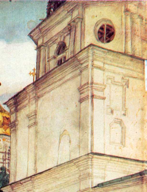 Верхні яруси дзвіниціРозмір зображення: 613:800 піксел Джерело: Крізь віки: Київ в образотворчому мистецтві 12 – 20 ст. – К.: Мистецтво, 1982 р., № 213. |