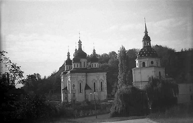 1975 р. Георгіївський собор і дзвіниця. Вигляд з північного заходуРозмір зображення: 800:509 піксел 1975 р. 12 жовтня. Фото М.І.Жарких. Негатека, № A069-22. |