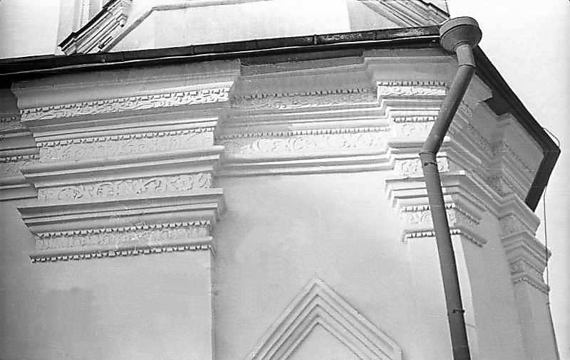1976 р. Карниз апсиди. Вигляд з півдняРозмір зображення: 800:506 піксел 1976 р. 21 березня. Фото М.І.Жарких. Негатека, № A090-23. |