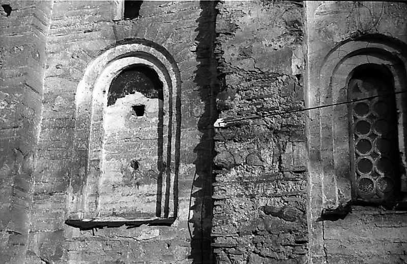 Ніша північного прясла західного фасаду. Вигляд із заходуРозмір зображення: 800:520 піксел 1977 р. 6 березня. Фото М.І.Жарких. Негатека, № A235-35. |