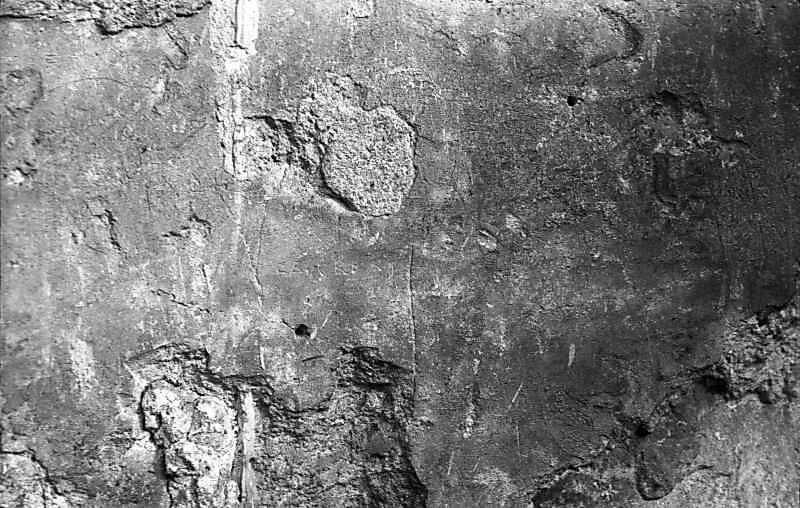 Фрагмент західного фасаду з граффіті “Всеволожая”. Вигляд із заходуРозмір зображення: 800:508 піксел 1977 р. 6 березня. Фото М.І.Жарких. Негатека, № A235-36. |