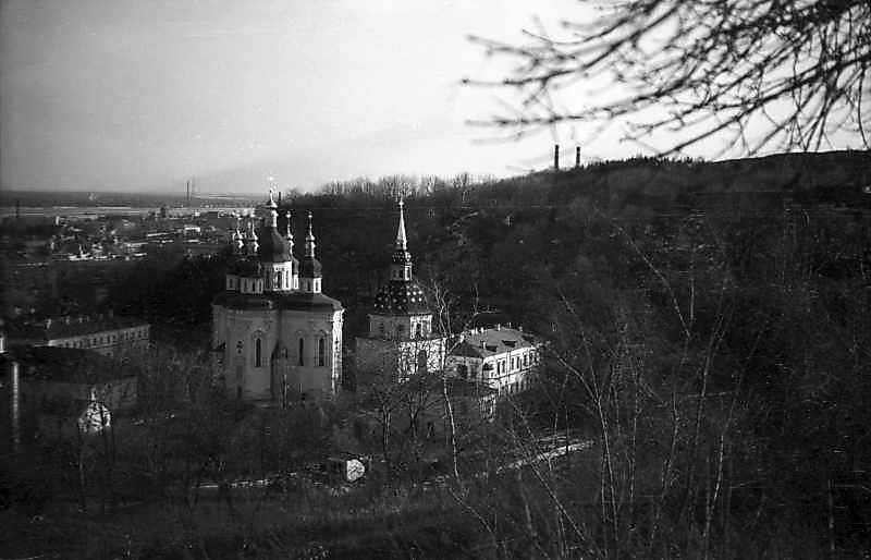 1977 р. Георгіївський собор і дзвіниця. Вигляд з північного заходуРозмір зображення: 800:514 піксел 1977 р. 6 березня. Фото М.І.Жарких. Негатека, № A236-36. |