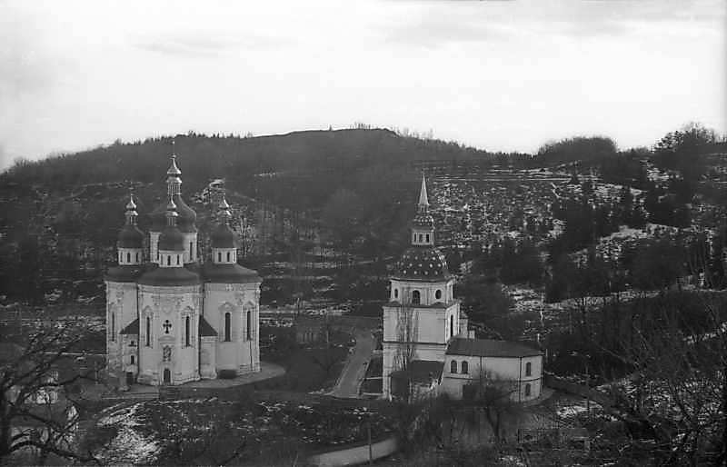 1977 р. Георгіївський собор і дзвіниця. Вигляд з півночіРозмір зображення: 800:514 піксел 1977 р. 6 березня. Фото М.І.Жарких. Негатека, № A237-08. |