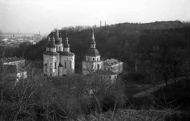 1977 р. Георгіївський собор і дзвіниця. Вигляд з північного заходуРозмір зображення: 800:512 піксел 1977 р. 24 березня. Фото М.І.Жарких. Негатека, № A238-17. |