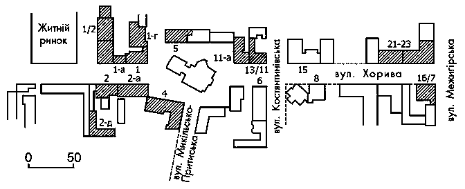 План початку вулиціРозмір зображення: 672:274 піксел Джерело: Звід пам’яток історії і культури України. – К.: 2011 р., т. 3 (Київ), № 542-1. |