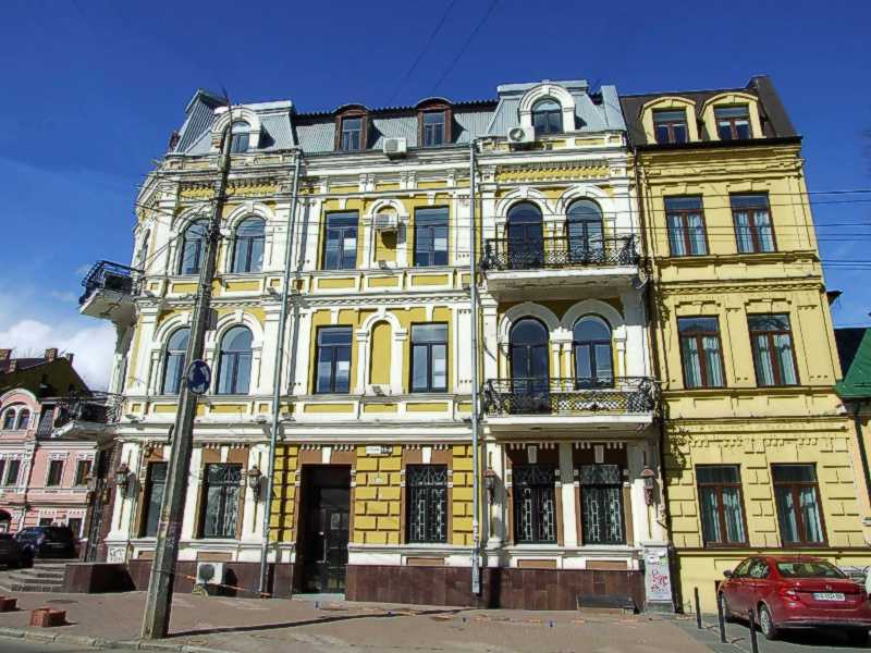 2021 р. Головний фасадРозмір зображення: 800:600 піксел Зверніть увагу – праворуч фасад на два вікна належить будинку по вул. Костянтинівській 11 / Хорева 13. Фото М. І. Жарких, 23 березня 2021 р. |
