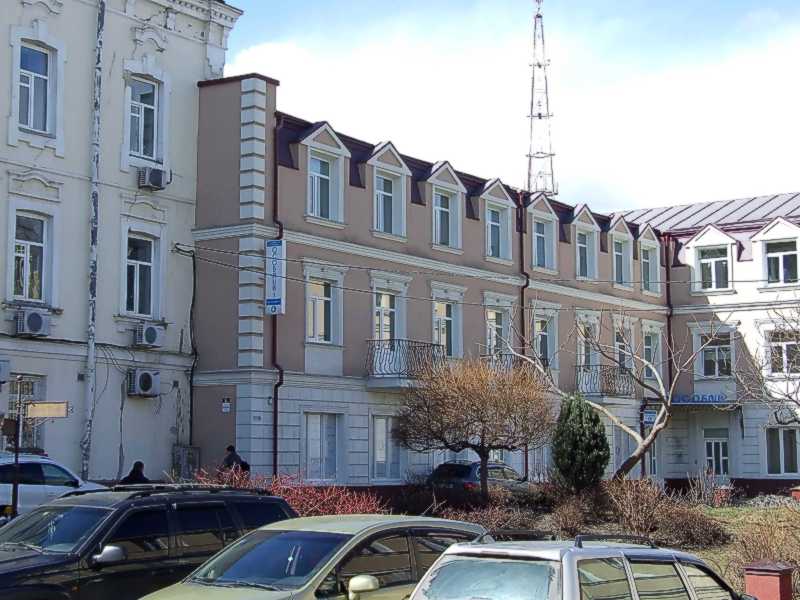 2021 р. Північно-східний фасад. Вигляд зі сходуРозмір зображення: 800:600 піксел Фото М. І. Жарких, 23 березня 2021 р. |