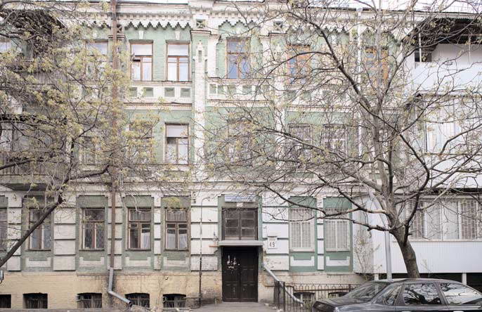 Головний фасад (№ 49б)Розмір зображення: 686:444 піксел Джерело: Звід пам’яток історії і культури України. – К.: 2011 р., т. 3 (Київ), № 542-30. |