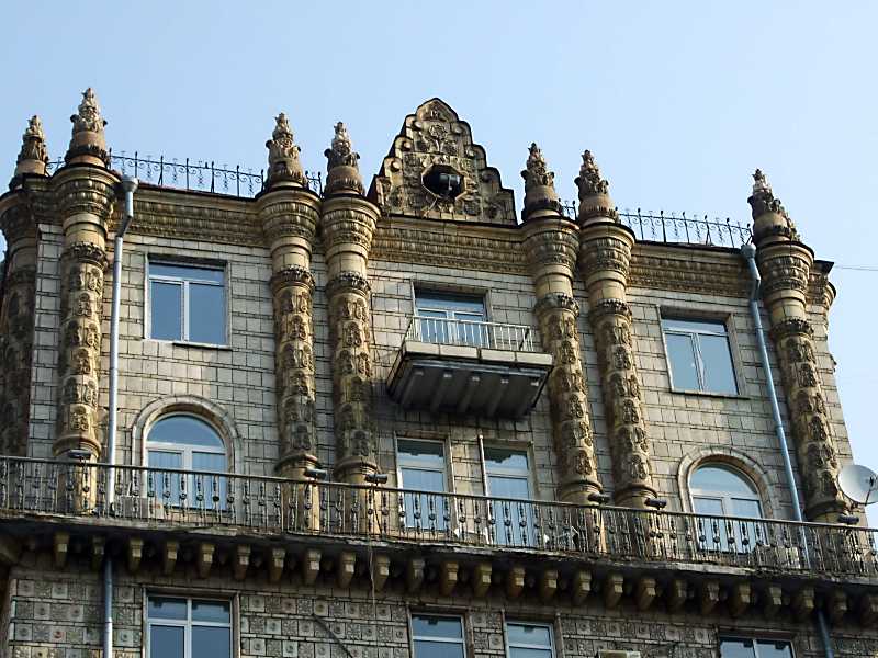 2012 р. Верхня частина з боку Пасажа Розмір зображення: 800:600 піксел 19 березня 2012 р. Фото М.І.Жарких. Вкладені елементи Теракотові колони
