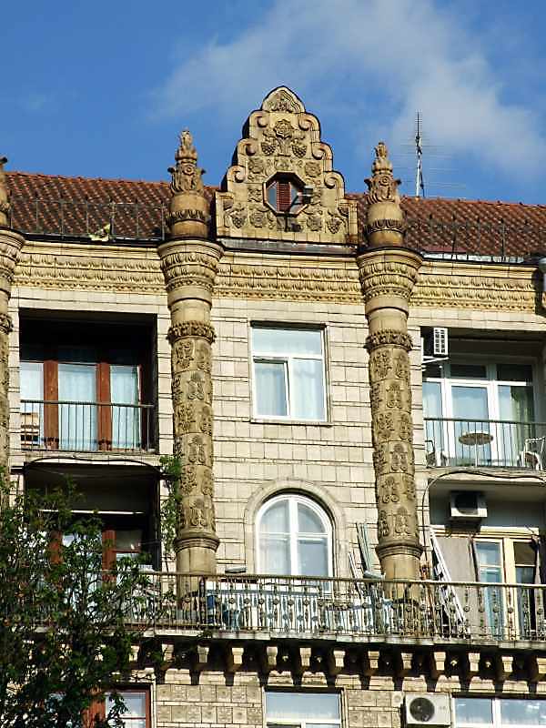 Фрагмент верхніх поверхів Розмір зображення: 600:800 піксел 2008 р. 9 червня. Фото М.І.Жарких. Вкладені елементи Рельєфний декор