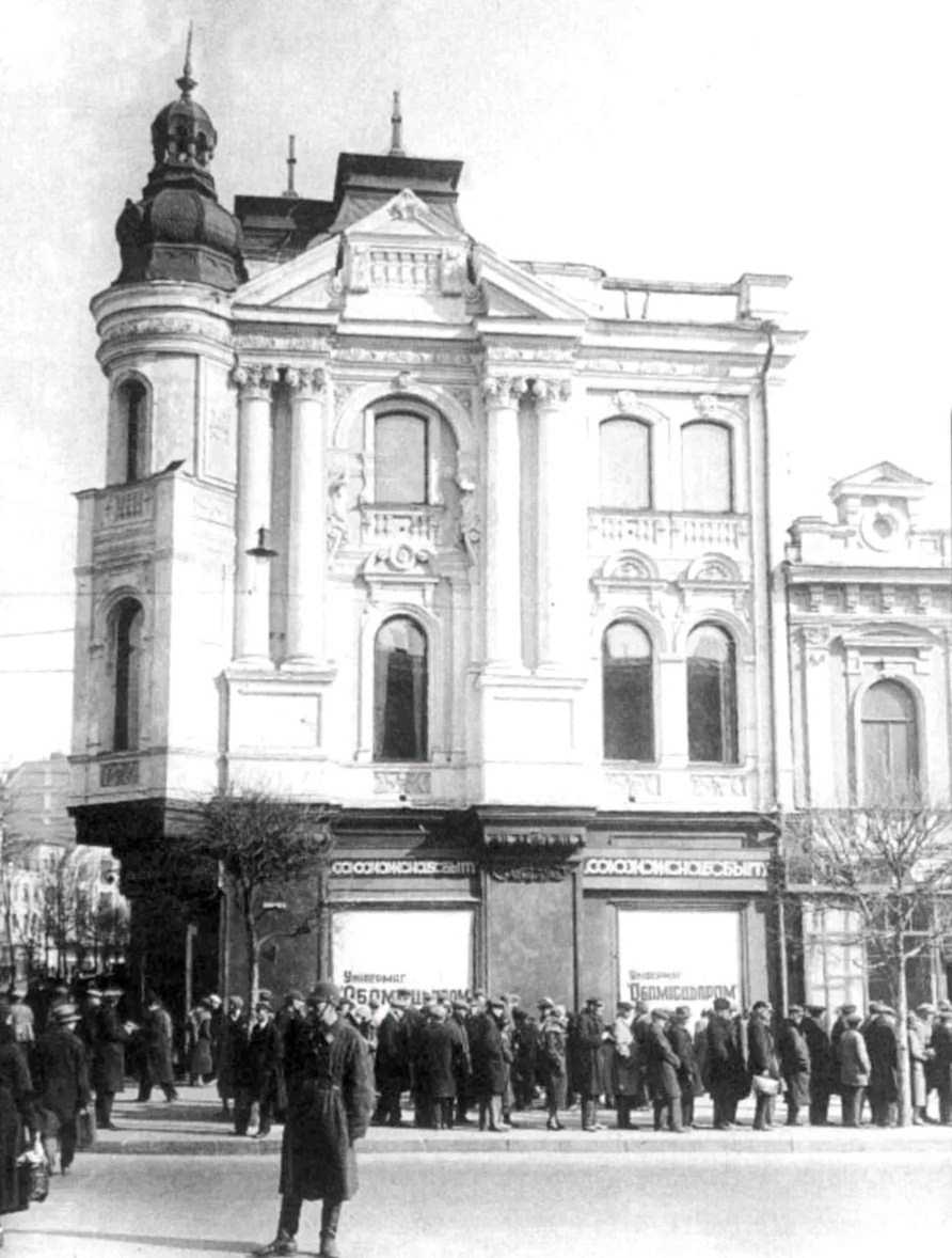 Фасад по вул. Карла Маркса (Городецького). Хрещатик – ліворуч за рогом будинку. Фото 1935 р. опублікував Борис Молодцов 29.01.2024 р.