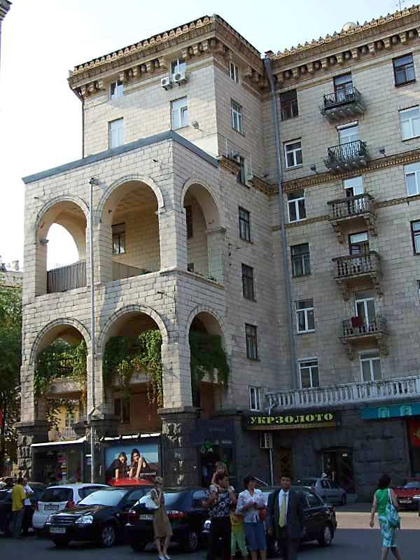2007 р. Торцевий фасад з боку станції метро “Хрещатик”Розмір зображення: 600:800 піксел 19 липня 2007 р. Фото М.І.Жарких. |
