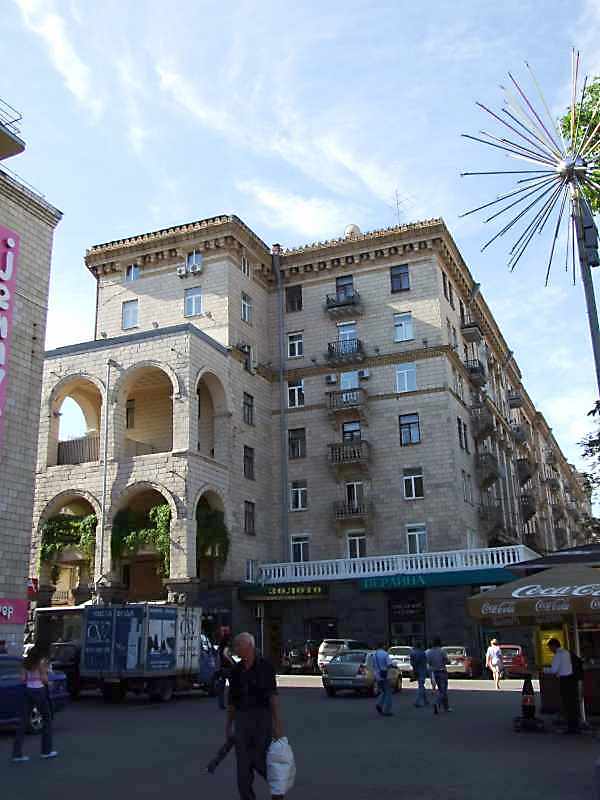 2008 р. Торцевий фасад з боку станції метро “Хрещатик”Розмір зображення: 600:800 піксел 2008 р. 25 червня. Фото М.І.Жарких. |