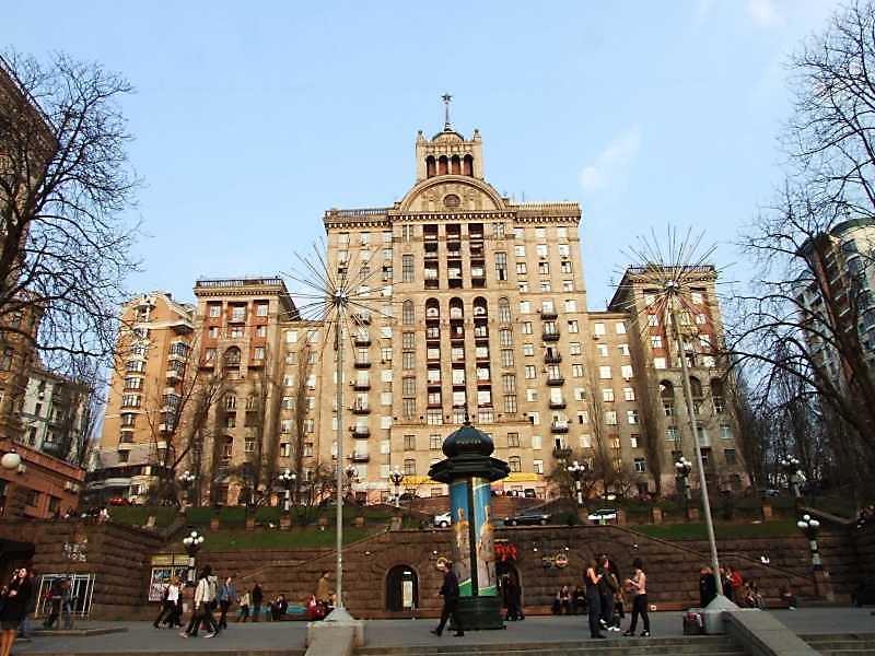 Житловий будинок (№ 25)Розмір зображення: 800:600 піксел Житловий будинок, 1952 – 1954 рр., архітектори А.Добровольський, А.Малиновський, П.Петрушенко [Памятники истории и культуры Украинской ССР. – К.: 1987 г., с. 30]. |