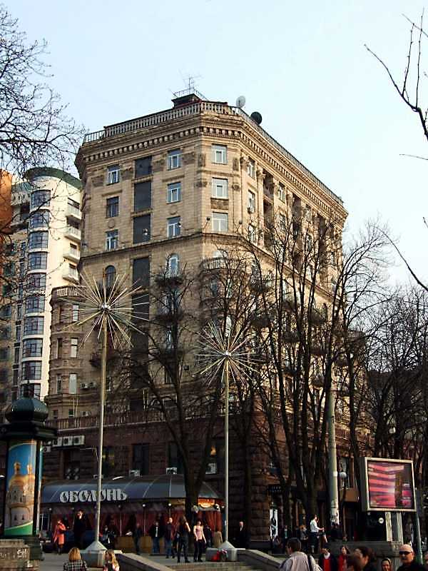 Житловий будинок (№ 27)Розмір зображення: 600:800 піксел Житловий будинок, 1952 – 1953 рр., архітектори А.Власов, А.Малиновський [Памятники истории и культуры Украинской ССР. – К.: 1987 г., с. 30]. Довідка у «Зводі пам’яток Києва» (2011 р.). |