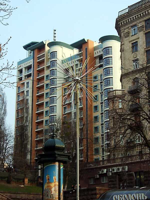 Житловий будинок (№ 27б ?)Розмір зображення: 600:800 піксел Загальний вигляд з Хрещатика (праворуч – фрагмент будинку № 27). 6 квітня 2009 р. Фото М.І.Жарких. |