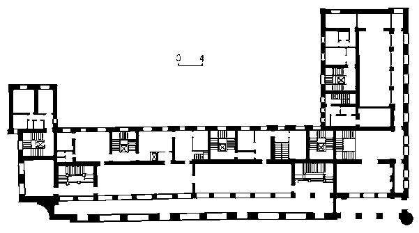 План першого поверхуРозмір зображення: 601:335 піксел Джерело: Звід пам’яток історії і культури України. – К.: 2011 р., т. 3 (Київ), № 544-50. |
