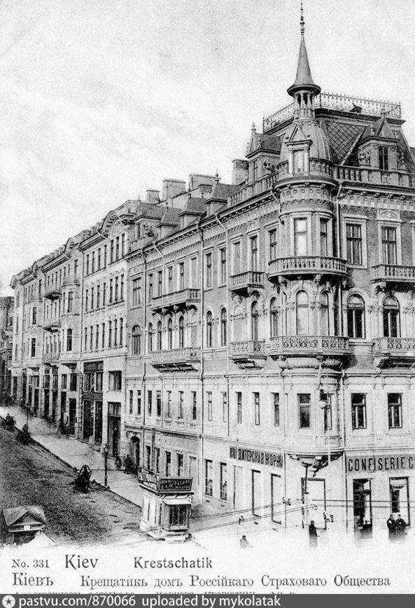 Архітектор В. Городецький. Може бути, що адреса цього будинку – Прорівна, 2 (ліворуч на фото), за ним видно будинки 4, 6. Праворуч – Хрещатик.;