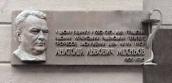 На фасаді будинку встановлено бронзові меморіальні дошки з барельєфними портретами Б. Гмирі (1973; ск. І. Кавалерідзе, арх. В. Гнєздилов), М. Гришка (1981; ск. М. Рапай, арх. А. Ігнащенко), А. Михньова (1972; ск. О. Скобликов, арх. А. Ігнащенко), В. Некрасова (1990; скульптори В. Селібер, І. Вайнер, арх. В. Романов), І. Неходи (1972; ск. К. Кузнецов, арх. В. Гнєздилов).