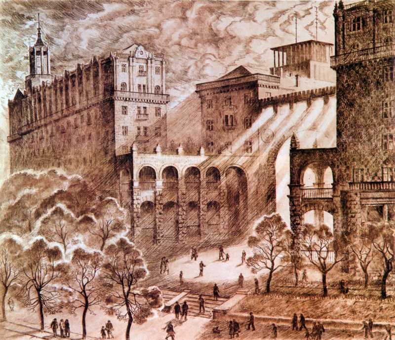 Папір, офорт. 42,5: 49,4. Державний музей українського образотворчого мистецтва УРСР, Київ.