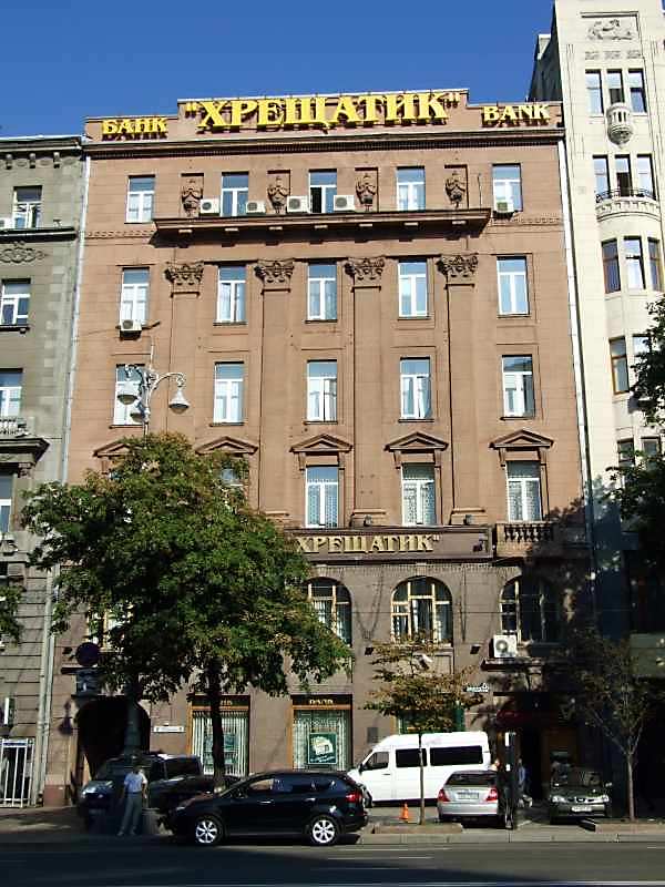 Петербурзький банк, 1911 – 1914 рр., архітектор Л.Бенуа [Памятники истории и культуры Украинской ССР. – К.: 1987 г., с. 29].