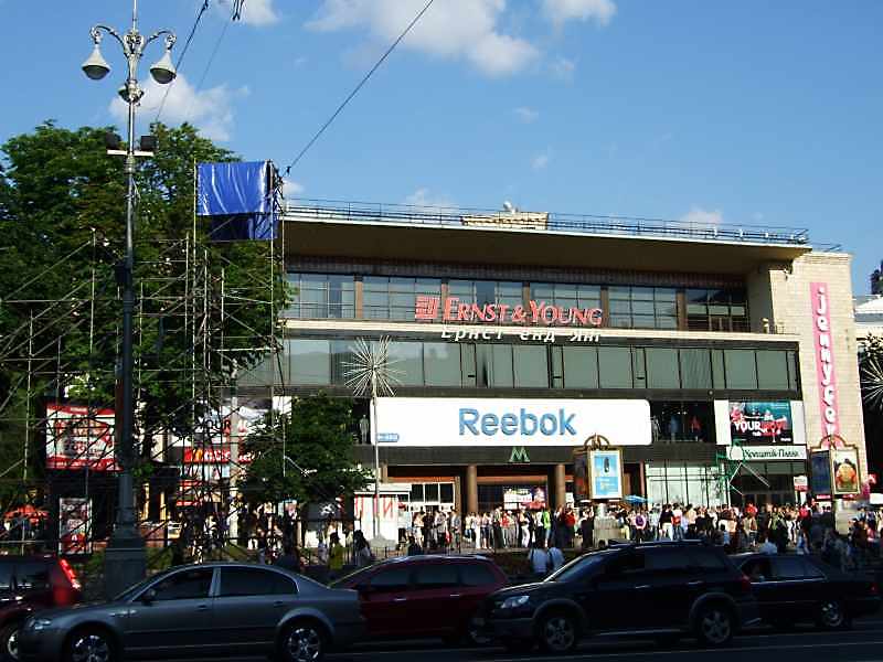 Станція метро “Хрещатик” (№ 19)Розмір зображення: 800:600 піксел Житловий будинок, 1953 – 1954 рр., архітектори В.Созанський, А.Добровольський (в тилу станції ?) [Памятники истории и культуры Украинской ССР. – К.: 1987 г., с. 29]. |
